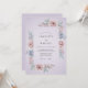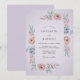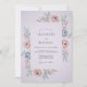 This design features a soft palette of lavender, dusty blue, and blush pink, creating an ethereal and romantic mood for a spring event. Delicate watercolor roses and ranunculus are nestled among sage green eucalyptus leaves and tiny berries. The light purple backdrop enhances the airy and graceful feel of the hand-painted botanical elements.