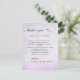 Colors of a spring morning in the background of this elegantly simple thank you card. Calligraphy highlights the greeting of the couple. Script is paired with an artful serif font.