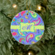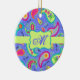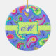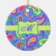 Add a splash of color this ornament featuring a whimsy paisley design and personalized with your monogram, initials or name. The bold colors of this trendy paisley design features a periwinkle lavender background with a lime green strip and emblem for personalization. Bright, fresh, modern paisleys make a beautiful artistic design that includes inspirational words of Love, Hope, Faith, Inspire, Cherish, Be Happy, Dream, and Live in the background between the paisleys. This Mod Paisley collection, designed by Phyllis Dobbs, uses the colors of teal, turquoise, lime green, wine, yellow, fuchsia and orange to create a fun and whimsey take on the traditional and popular paisley motif. The paisley motif is timeless in appeal but this original art is both trendy and contemporary. Fully customizable for personalization with your own words to add your own message.