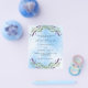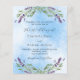A white and blue sky as background decorated with lavender flowers and eucalyptus greenery. Personalize and your names and details.