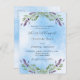 A white and blue sky as background decorated with lavender flowers and eucalyptus greenery. Personalize and your names and details.