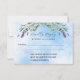 A white and blue summer sky as background, black text. Decorated with lavender florals and eucalyptus greenery. Personalize and add a reply by date.
