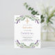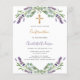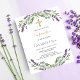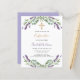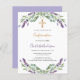 A white background decorated with lavender flowers and eucalyptus greenery. Personalize and a name and details.