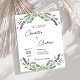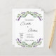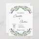 A white background decorated with lavender flowers and eucalyptus greenery. Personalize and your names and details.