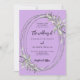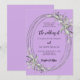 A lavender colored background. Decorated with greenery and an oval frame. Personalize and add your names and details.