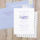 Fresh bouquet of lavender and dusty blue roses is beautiful on this save the date wedding announcement. Light purple and light blue flowers are perfect for a summer or springtime wedding. Easily modify this purple save our date card for a variety of occasions. Elegant script is easy to modify.
