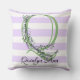 Lavender light purple white strips monogram throw pillow