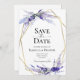 Hand painted watercolor floral wedding save the date card with lavender floral bouquets with digital gold foil frame. You can personalize the wording, font style, color and size in front and back of the invitation. This wedding save the date card is part of a complete wedding set with matching stationery.