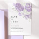 Soft lavender and lilac florals meet delicate white hydrangeas in this elegant Save the Date card, designed for couples who love a refined, romantic wedding aesthetic.