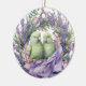 Lavender Lovebirds - this is a charming watercolor art piece designed with two lovely lovebirds in soothing green hues surrounded by a wreath made from charming lavender florals. The soothing hues of lavender and greens are a great addition to any home decorating style and add a calming feeling to your surroundings.