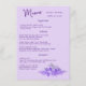 Lavender minimalist elegant Wedding Menu