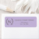 Lavender colored background. Decorated with a warm gray wreath. Personalize and add your name, address and family monogram initial. Warm gray colored text.
