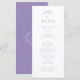 Elevate your reception with our Lavender Monogram Wedding Menu Card. Featuring a simple and sophisticated design with the monogram and wildflowers, this menu card adds a touch of timeless beauty to your tablescape. Guide your guests through a memorable culinary experience with this elegant addition.