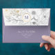 Simple, elegant, modern, boho dusty purple lavender wedding 5x7 envelope with unique, sophisticated silver and gold floral lace, return address and monogram at the top cover.
