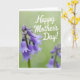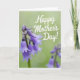 This design shows a cluster of small, bell-shaped flowers in soft lavender hanging from a slim green stem along the left edge, like a gentle nod of affection. The foreground blossoms are sharp and softly lit, while the leaves and garden behind fade into a smooth blur that feels calm and intimate ❤️. Light spreads evenly across the petals, bringing out fine textures without harsh shadows, as if the scene is being admired in quiet company. The background sits in muted olive green, keeping the focus on the flowers and giving the whole card a relaxed springtime feel 🌼. In the upper right area, the message “Happy Mother’s Day!” appears in white, flowing lettering that curves lightly against the green. The placement leaves plenty of open space around the words, balancing the floral cluster on the opposite side. Near the top of the stem, a few buds remain tightly closed, tucked above the open blooms.