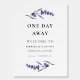 One Day Away: wedding rehearsal dinner welcome sign. A classic and elegant lavender watercolor design, perfect for a floral spring country wedding.