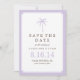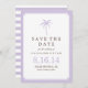 Stylish save the date announcements perfect for a summer or tropical destination wedding feature a beautiful illustration of a palm tree and an elegant nautical stripes pattern on the back. Visit our store for more color options and matching products.