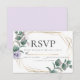 WEDDING RSVP | Geometric shapes with shade of lavender and off white flowers - a gold geometric multi faceted terrarium style frame adorned with watercolor leaves and flowers. Reverse is a complimentary coordinated color. Customize text, font style, color and size. Original artwork created for the BarefootBride™ by © WhimsicalArtwork™ - This is part of a complete Wedding Stationery Suite with matching wedding, baby shower and other event stationery.