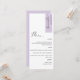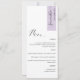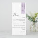 Why spend in place cards and menu cards when you can have an elegant All-in-one elegant Menu personalized with each guest name! Contemporary, simple and elegant design with beautiful modern hand written calligraphy. Stripe on the top right corner in attractive lavender tone with guest name in black. Back in same lavender color as stripe. Ability to change both stripe color or back by selecting "customize further". NOTE: please an individual order for each menu by adding guest name into menu, add menu into shopping cart; then come back to menu, add second guest name, add menu to shopping cart...continue with this process with all guest names on your list. For short first guest names, add with your keyboard spacebar a few empty "spaces" before the name, to center it better. Design available in a variety of color choices. Part of our "Mauve and Purple Event Signs and Products" collection with a variety of coordinating products available.