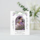 A modern wedding Save the Date photo card. Decorated with lavender florals, flowers and eucalyptus greenery. Personalize and add your photo, wedding details and your own qr code to your wedding website.