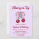 Lavender Pink Bow Cherry on Top 1st Birthday Invitation