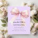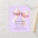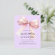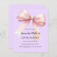 A soft lavender, purple colored background, decorated with a large pink bow. Personalize and add a name and party details.