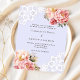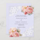 For an elegant and romantic wedding. A lavender colored background decorated with pink and rose gold florals, roses and lace. Personalize and add your names and details.