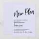 This suite's distinction is due to the bold, casual handwritten script font used for accent phrases. If you're in the position of needing to inform your wedding guests that you've had to change your big date, here is a bold option. In this piece, the hand-lettered script font was used to create a simple graphic depicting the word "New Plan". Use the template fields to add your personal details and make this modern design your own. The background can be changed to any color you prefer. Please reach out with any special requests or for customizing assistance. // 105 //