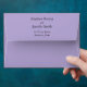 Use this custom envelope in place of the generic white envelopes that come standard with all of the cards and invitations in the Graceful Flowers Wedding Collection. This custom envelope features a plain lavender purple exterior with a darker purple on the inside flap. Your return address is pre-printed on the back.