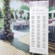 This beautiful retractable banner is a wonderful way to welcome guests to your wedding reception, while making it easy for them to find their seats. It features a simple yet elegant boho chic design with hand painted watercolor roses and blossoms in shades of lavender, lilac, and dusty purple. The lettering includes fancy script calligraphy adding a touch of elegance and style. The chart is designed in an alphabetical format making it simple for your guests to find their names, and can accommodate up to 250 names. Compact, and easy to transport, this seating chart is a wonderful option for destination weddings where space is a consideration.