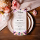 Lavender Purple Peach Pink Floral Wedding Menu