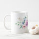 Add your name in English and Hebrew to display your unique style. Go to the Design Tool to reposition the text. The mug features pastel lavender purple roses and greenery.