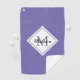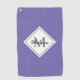 Show your style while golfing with this Lavender Purple Script Personalized Monogram Golf Towel. It is a modern design with a customizable purple background and white diamond shape on the center with your initial in grey. Your name is in elegant black script lettering. You can change the colors from lavender purple as shown if you prefer a different color. This makes a great personalized golf gift idea for her!