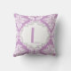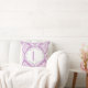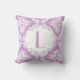 Lavender purple, white damask pattern throw/toss accent decorative pillow with monogram in a grey frame.