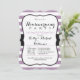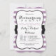 Elegant, formal Lavender Purple and white stripes, striped pattern housewarming, house warming party invitation with black fonts. Perfect year round classy invite for spring, summer, fall, or winter new house, housewarming parties. Bracket shape invite for stylish vintage look.