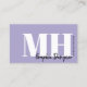 Lavender Purple Professional Simple Modern Monogram Business Card. You can change it to any business you want—makeup artist, lash specialist, hair stylist, or even something like marketing, consulting, and more! Featuring a lavender purple background on both sides with a mix of black and white fonts in classic and bold typography paired with an elegant script font for the details. The back includes space for a QR code so customers can quickly connect to your website, with social media icons displayed above it—you can remove any icons you don’t want to keep it clean and personalized. A trendy and chic look that is still professional and elegant. You can change out all of the colors to make it the way you want it. The side name on the front should work with most initials, but if not, you may want to play around with the spacing in the full editor.