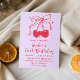 Lavender & Red Bow Cherry Fruit 1st Birthday Party Invitation