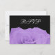 A gorgeous lavender rose flower is featured on a black background makes this a classic wedding RSVP card.