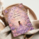 This elegant quinceañera design features a dreamy lavender watercolor background framed by lush roses and ornate gold details, with a graceful gown illustration creating a soft fairytale atmosphere. The pastel purple palette, romantic florals, and refined composition give the design a luxurious yet youthful feel, perfect for a classic quinceañera celebration with an enchanted, elegant aesthetic.