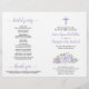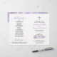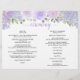 This beautiful program is designed for a Catholic ceremony. It features a rustic boho chic design with a hand painted watercolor roses, blossoms, and flowers in shades of lavender, lilac, and light purple. There is a crucifix or cross, with elegant script calligraphy for the names of the couples and titles. The inside has extended space for all of the details on the ceremony, while the back has information on the bridal party along with a short thank you note. Beautiful way to welcome your guests and make it easy for them to follow along with the ceremony.