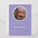 Silver foil and purple naming ceremony invitation with a photo of your baby girl inside a simple silver wreath. Photo naming ceremony invitation in silver and purple with a charming leafy wreath.