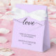 Add a touch of elegance to your wedding favors with these personalized favor boxes. Customize them with the names of the bride and groom, a special message, and the date of your wedding. The design features a simple and chic lavender color, with the word "Love" elegantly written in a modern script font.
