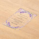 Make a dazzling first impression with this lavender eucalyptus sparkles acrylic wedding invitation. Crafted from high-quality clear acrylic, the invitation features elegant eucalyptus artwork and shimmering sparkle accents that catch light beautifully. Designed for evening weddings, this luxe acrylic card sets the tone for a sophisticated, modern celebration.