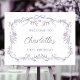 This 1st birthday party welcome sign (poster) features a lavender floral frame adorned with butterflies and ribbons. For more advanced customization of this design, please click the DESIGN TOOL BUTTON above! Matching items are also available.