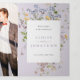 This elegant lavender wedding all in one invitation features a vertical cascade of delicate wildflowers in soft pastel tones. The botanical artwork blends muted purple hues, airy meadow blooms, and subtle foliage accents for a romantic yet minimalist look. The clean layout paired with whimsical florals creates a chic and timeless design perfect for modern couples.