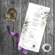The flowers on the invitation are soft and romantic, rendered in gentle shades of purple with watercolor-like texture. They resemble wildflowers or garden blooms—perhaps lavender, lilac, or anemone—clustered loosely among slender green leaves. The arrangement cascades vertically along the left edge, adding a natural, airy elegance that complements the overall design with a touch of whimsy and seasonal charm. The text is easy to personalize with your own information.