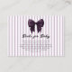 Celebrate the arrival of a new baby with this charming 'Books for Baby' enclosure card. Designed with a sophisticated deep purple bow against a delicate lavender and white striped background, this card offers a heartwarming alternative to traditional baby shower gifts. It gently encourages guests to bring a book instead of a card, suggesting that a well-loved or brand-new story will be a cherished keepsake. The elegant script 'Books for Baby' invites guests to share a sweet message inside the cover, ensuring the words will be treasured forever. This card adds a touch of class to your baby shower while building a precious library for your little one.