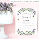 A white background decorated with lavender flowers, eucalyptus greenery and bees. Personalize and your name and details.