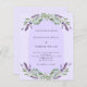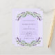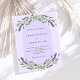 A violet background decorated with purple lavender flowers, eucalyptus greenery and an arch frame. Personalize and your names and details.