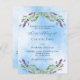 A white and blue sky as background decorated with lavender flowers and eucalyptus greenery. Personalize and your names and details.